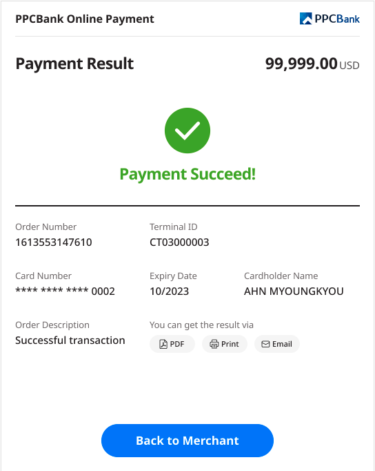 <figure><img src="https://4168833594-files.gitbook.io/~/files/v0/b/gitbook-legacy-files/o/assets%2F-MO0T6AWg35JuiFxALbE%2F-MWcIu13zfKLysJGyBXw%2F-MWcL5qSj9Y6aD0IcRL8%2F8.png?alt=media&#x26;token=f632f0ae-252e-4122-aa48-4b6fe9221d1b" alt=""><figcaption><p>Figure 03 PAYON PG Payment Succeed </p></figcaption></figure>